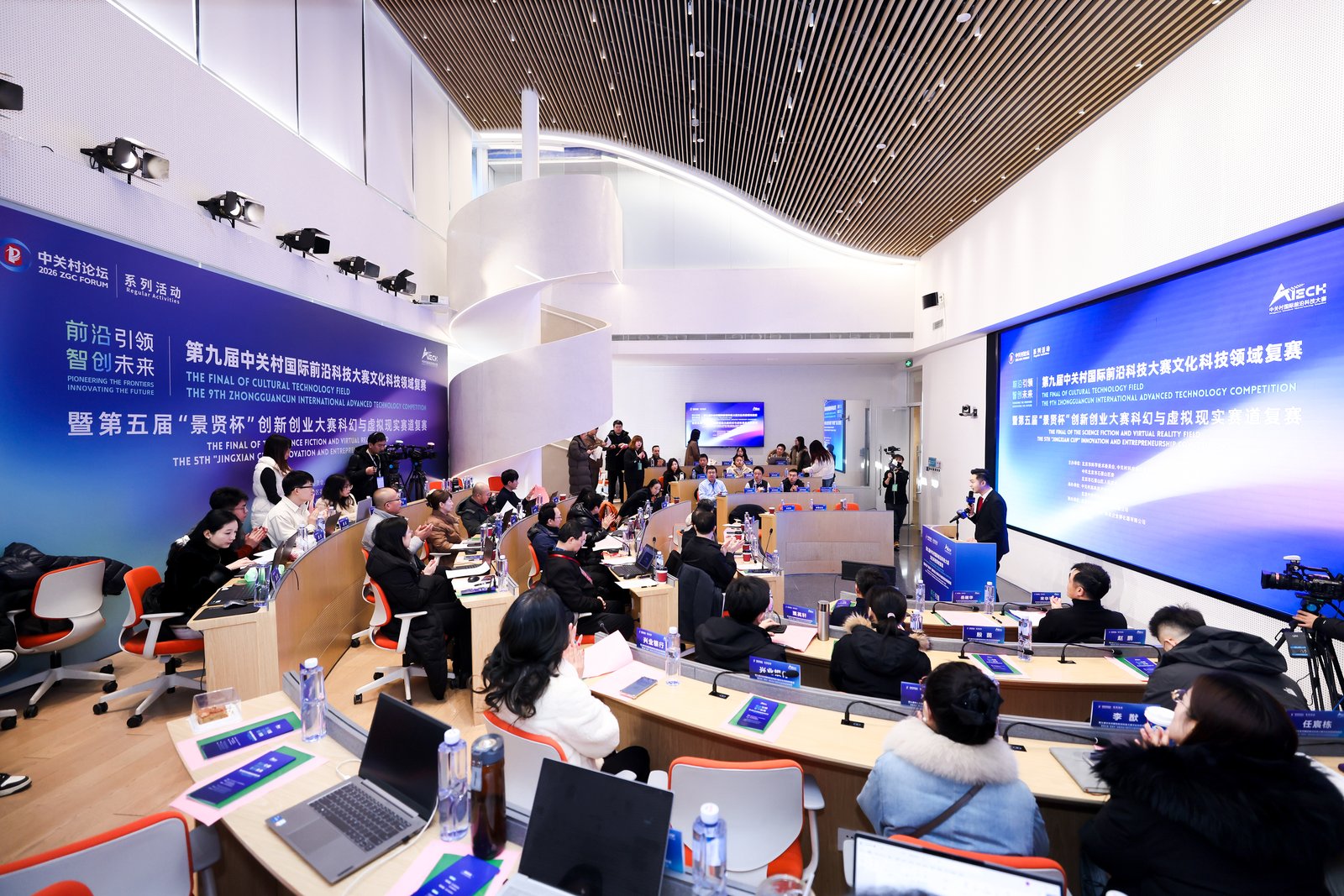 1月23日,第九屆中關(guān)村國(guó)際前沿科技大賽文化科技領(lǐng)域復(fù)賽暨第五屆“景賢杯”創(chuàng)新創(chuàng)業(yè)大賽科幻與虛擬現(xiàn)實(shí)賽道復(fù)賽在石景山首鋼園舉辦。